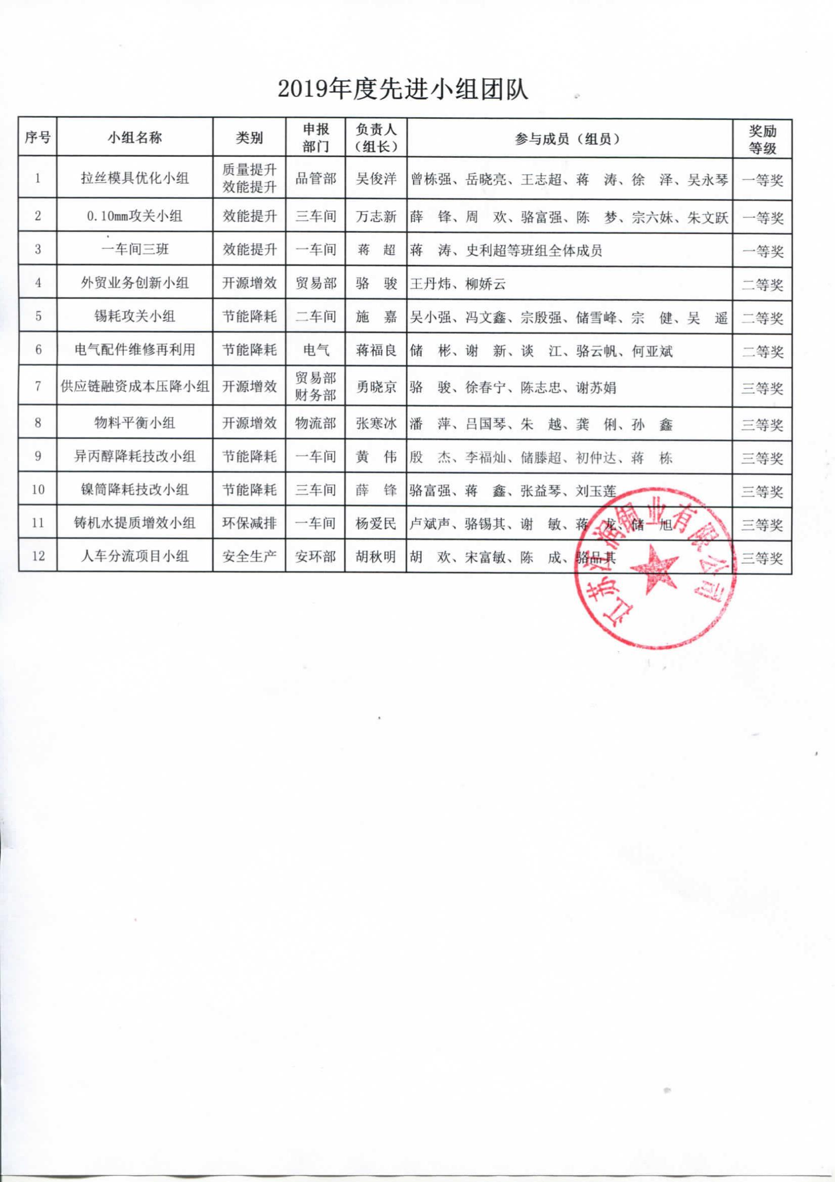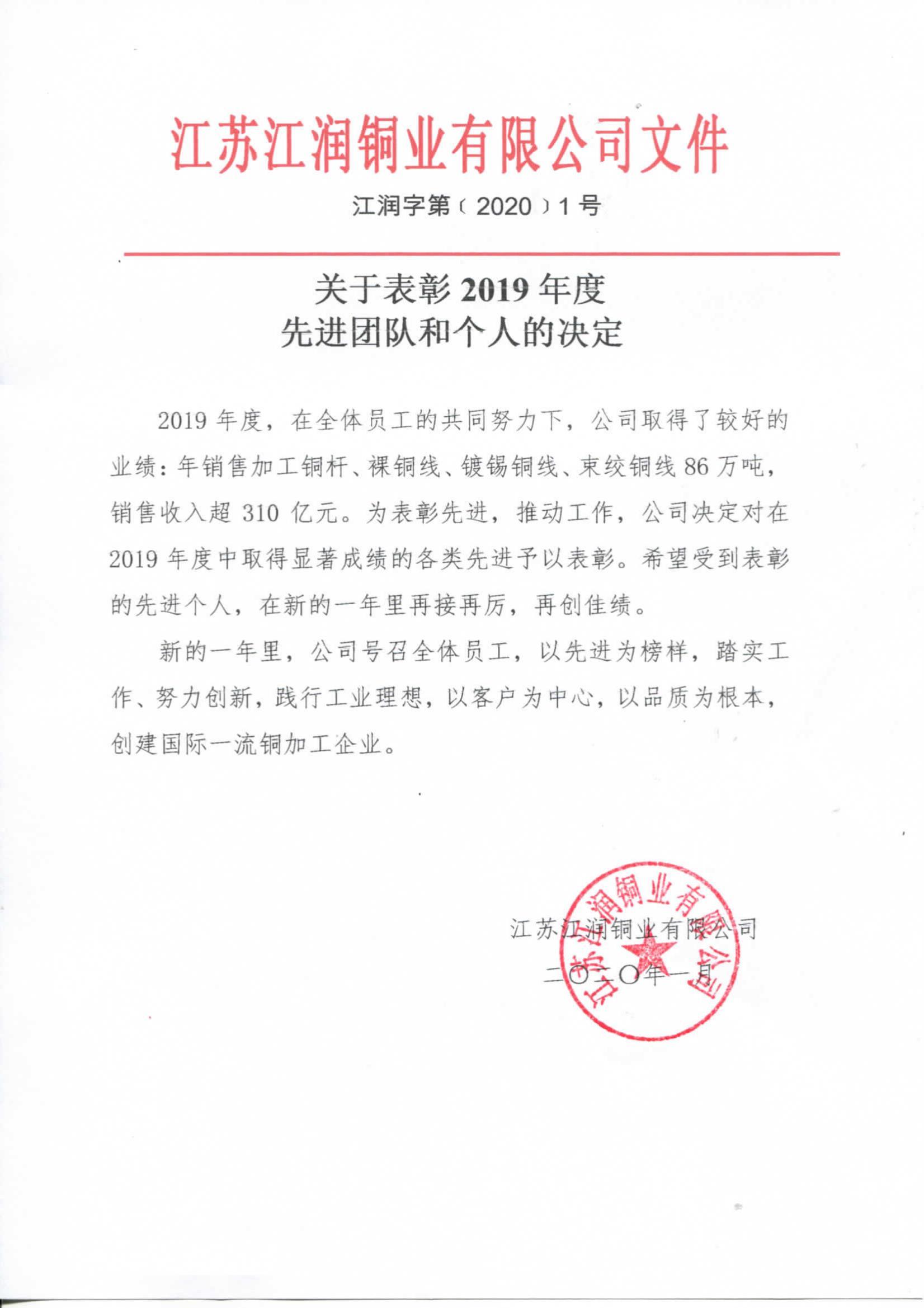 2019年度江潤銅業(yè)先進表彰